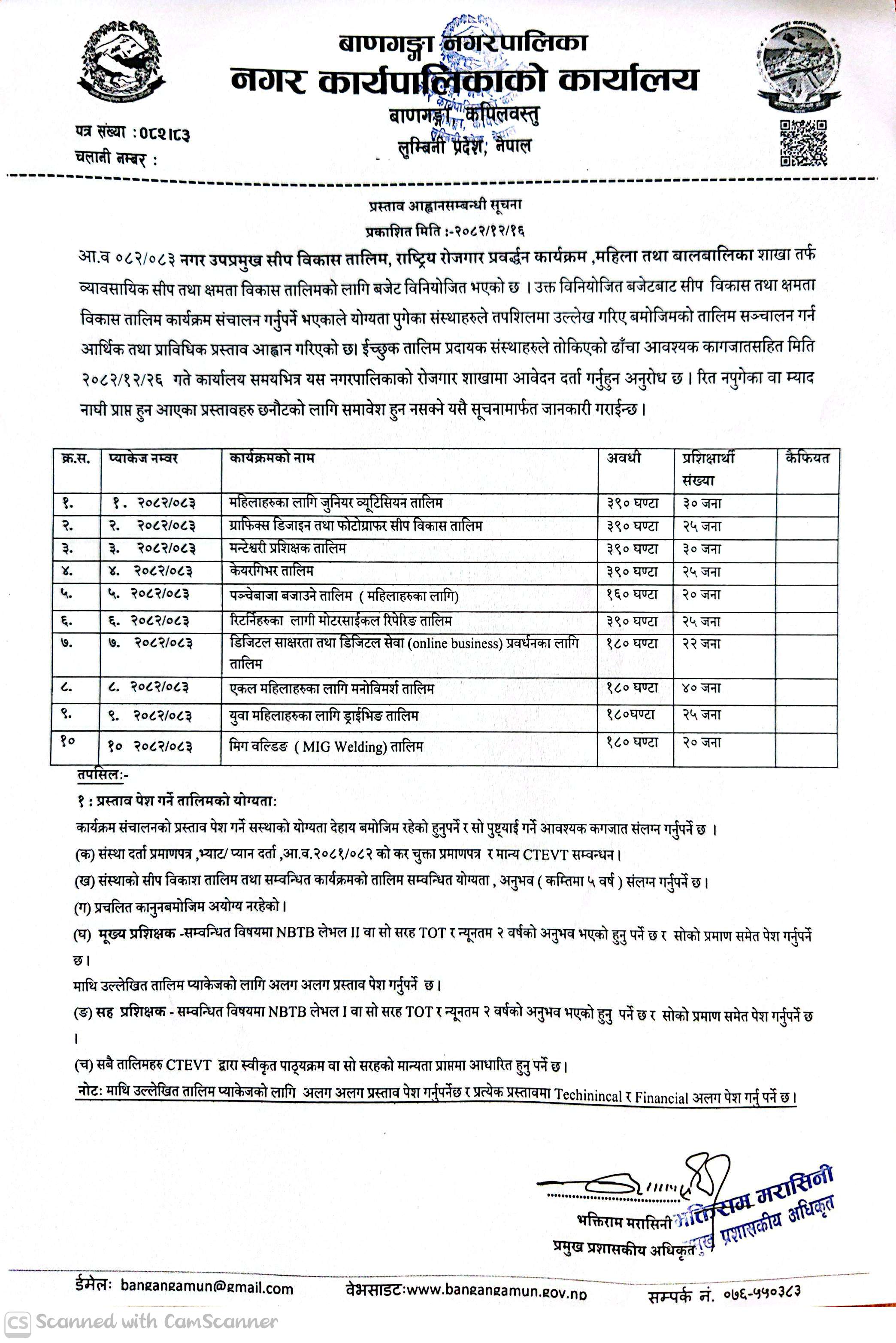Home » व्यावसायिक सीप तथा क्षमता विकास तालिम सञ्चालनको लागि प्रस्ताव आह्वान सम्बन्धी सूचना ।