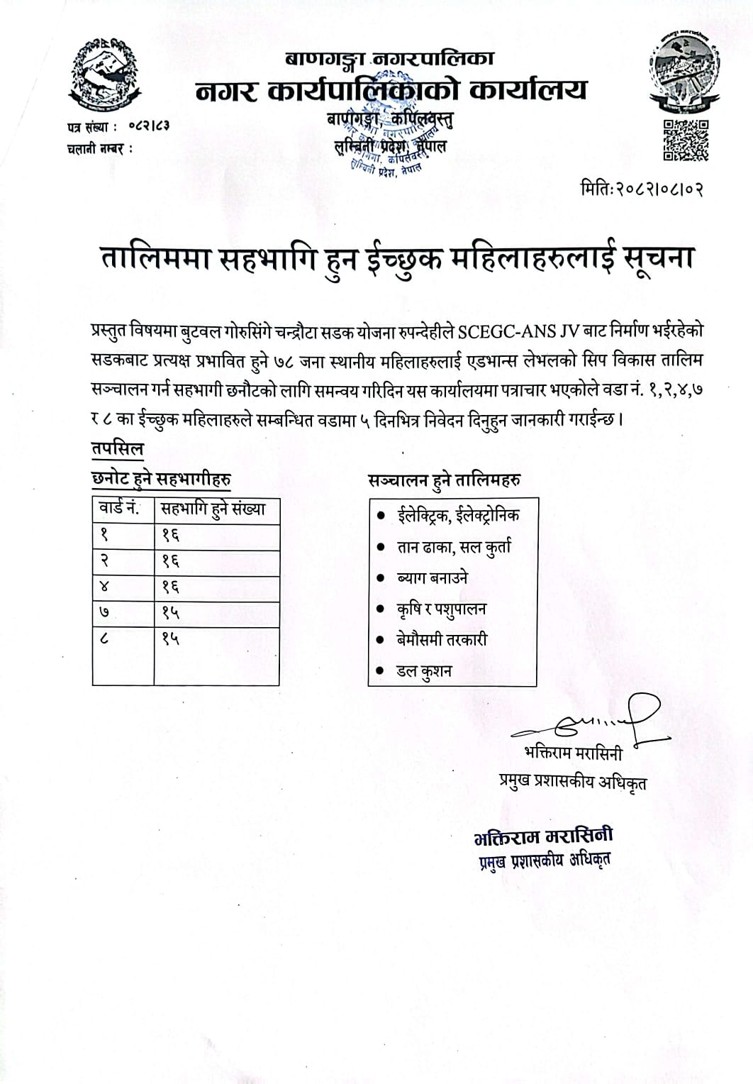 Home » तालिम लिन इच्छुक महिलाहरुको लागि सूचना