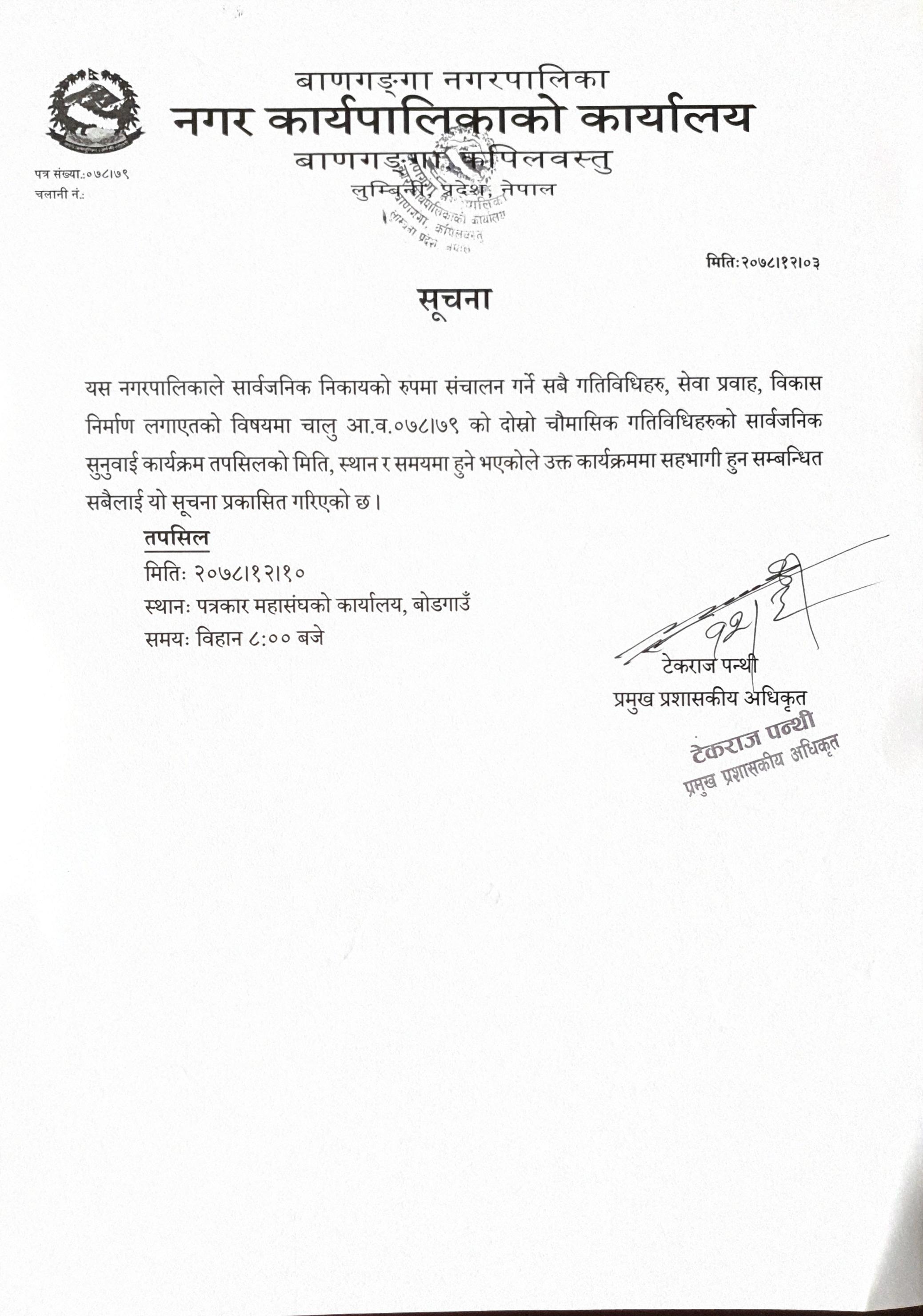 Home » सार्वजनिक सुनुवाई सम्बन्धी सूचना ।